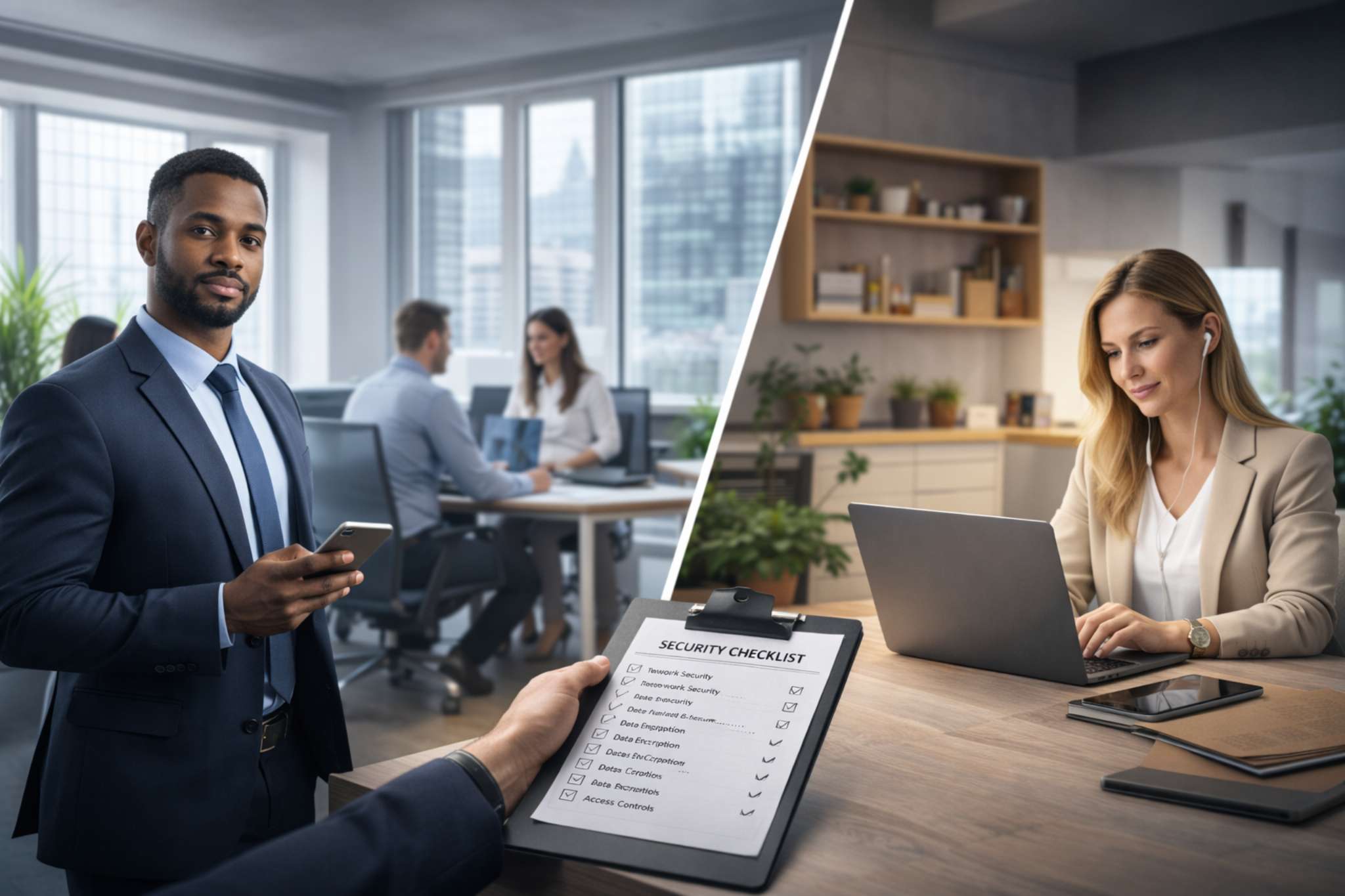 Most businesses that support remote work are not entirely remote. According to Buffer, about 65% of businesses have a combination of office-based employees and remote employees. Businesses with this type of structure tend to face challenges such as unsecure and inefficient team communication and collaboration, outdated technology, unsecure network connections, insider threats, and more business security concerns due to their users being in various workspaces and not having the right tools to do their jobs.